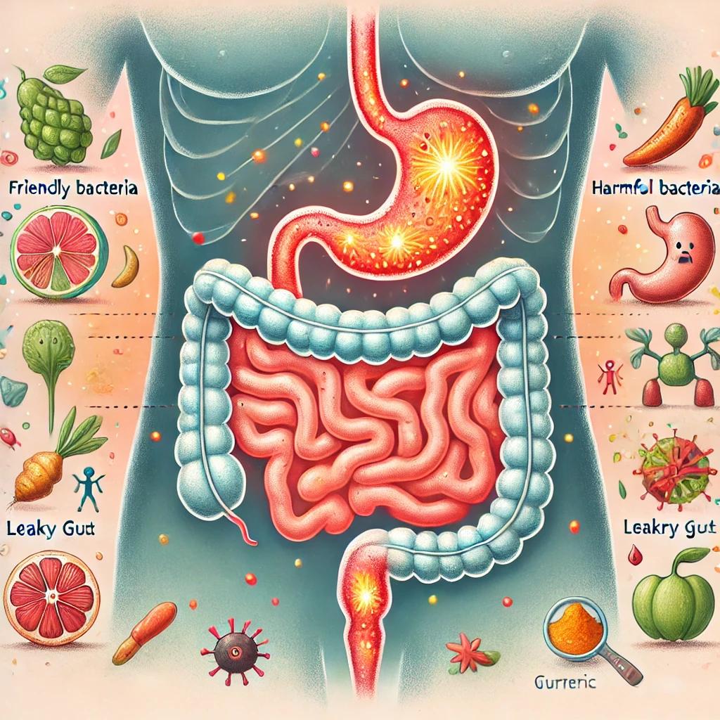 1. Leaky Gut Syndrome:  When inflammation damages the gut lining, it can cause a condition known as leaky gut. In a healthy gut, the lining acts as a barrier, allowing nutrients to pass through while keeping out unwanted substances. But with chronic inflammation, the gut lining becomes permeable, allowing toxins, bacteria, and undigested food particles to “leak” into the bloodstream. This can trigger more inflammation, which may contribute to food sensitivities, joint pain, and fatigue.